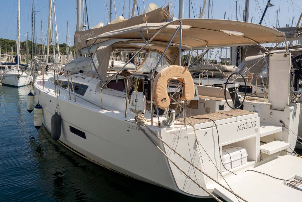 Diese Yacht Dufour 430 GL (Segelboot - Baujahr 2023) liegt in der Cote D'Azur, Port Pin Rolland, Provence-Alpes-Côte d'Azur, Frankreich. Sie verfügt über 4 Kabinen, bietet Ihnen Platz für 10 Personen und hat 2 WC.