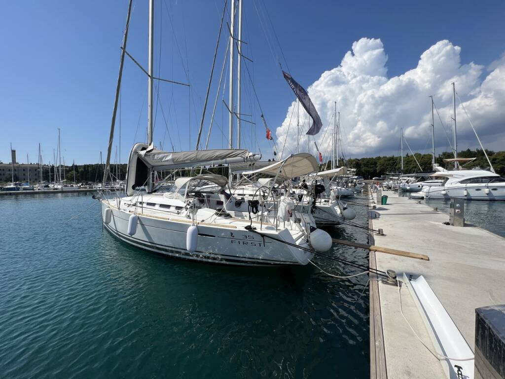 Diese Yacht First 35 (Segelboot - Baujahr 2011) liegt in der Pula, Marina Polesana, Istrien, Kroatien. Sie verfügt über 2 Kabinen, bietet Ihnen Platz für 4 + 2 Personen und hat 1 WC.