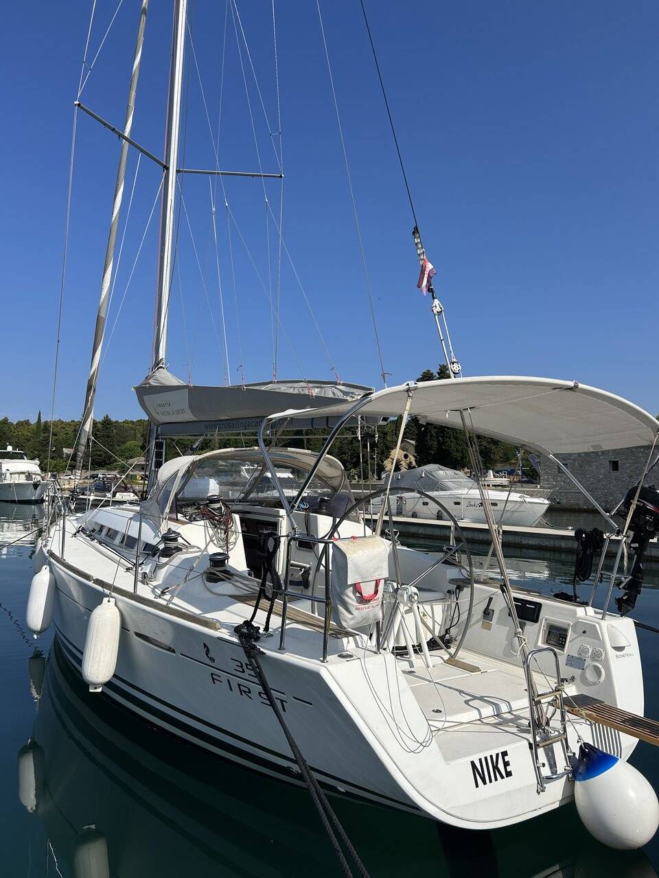 Diese Yacht First 35 (Segelboot - Baujahr 2011) liegt in der Pula, Marina Polesana, Istrien, Kroatien. Sie verfügt über 2 Kabinen, bietet Ihnen Platz für 4 + 2 Personen und hat 1 WC.