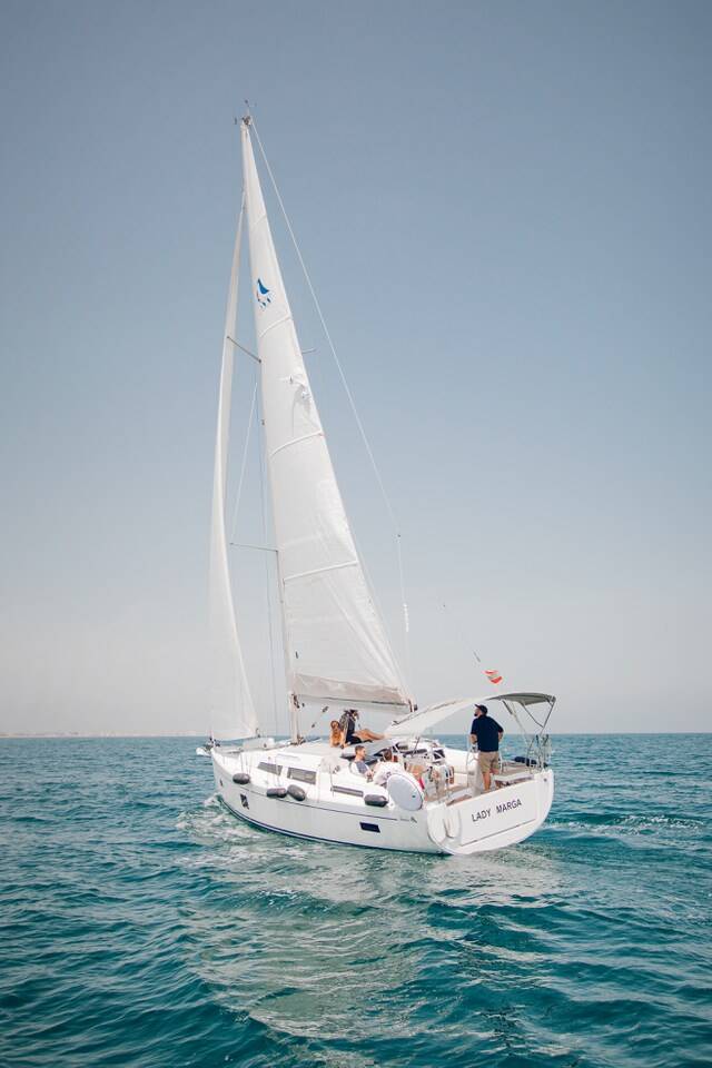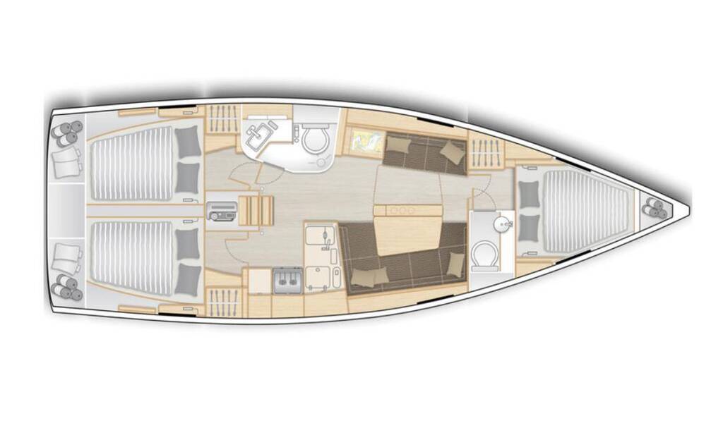 Diese Yacht Hanse 388 (Segelboot - Baujahr 2022) liegt in der Denia, Marina de Dénia, Alicante, Spanien. Sie verfügt über 3 Kabinen, bietet Ihnen Platz für 6 Personen und hat 2 WC.