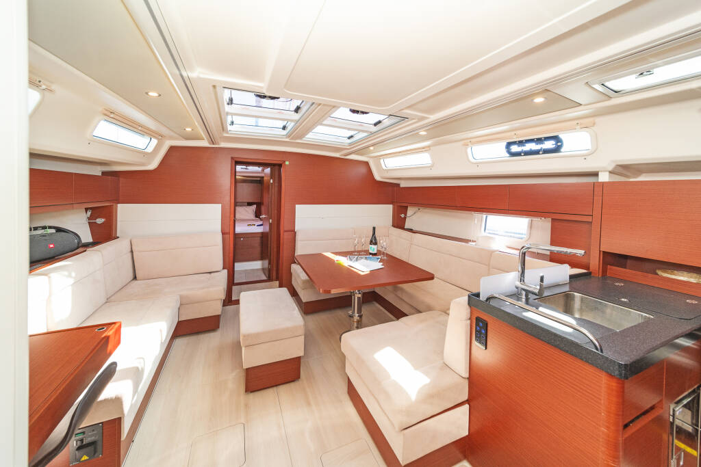 Diese Yacht Hanse 458 (Segelboot - Baujahr 2021) liegt in der Lavrion, main port, Athens area/Saronic/Peloponese, Griechenland . Sie verfügt über 4 Kabinen, bietet Ihnen Platz für 8 + 2 Personen und hat 2 WC.