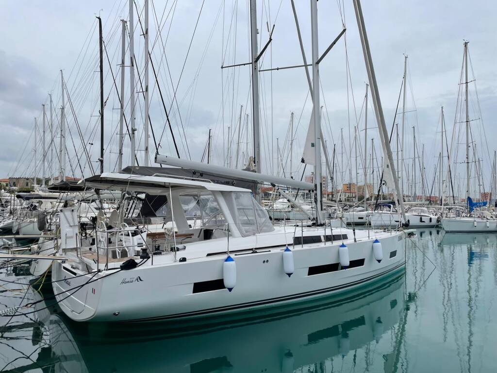 Diese Yacht Hanse 460 (Segelboot - Baujahr 2024) liegt in der Sardinien, Cannigione, Sardinien, Italien. Sie verfügt über 3 Kabinen, bietet Ihnen Platz für 6 Personen und hat 3 WC.