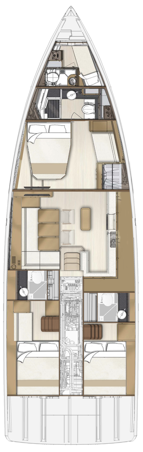 Diese Yacht Jeanneau 55 (Segelboot - Baujahr 2025) liegt in der Salerno, Campania, Italien. Sie verfügt über 3 + 1 Kabinen, bietet Ihnen Platz für 6 + 2 + 1 Personen und hat 3 + 1 WC.