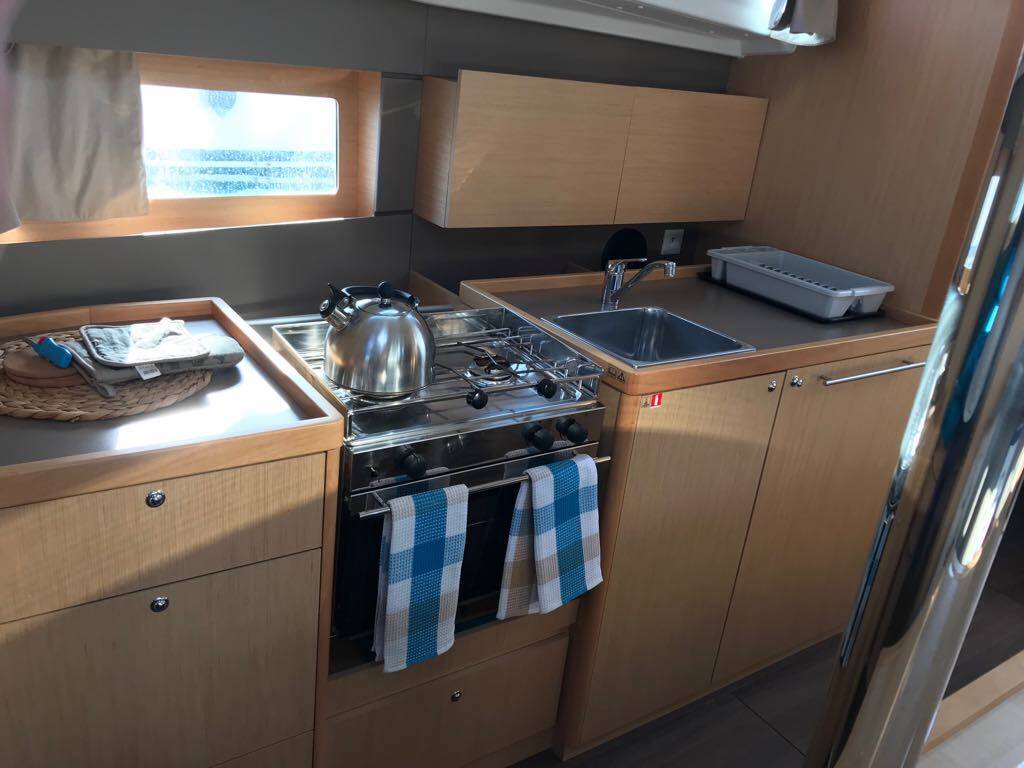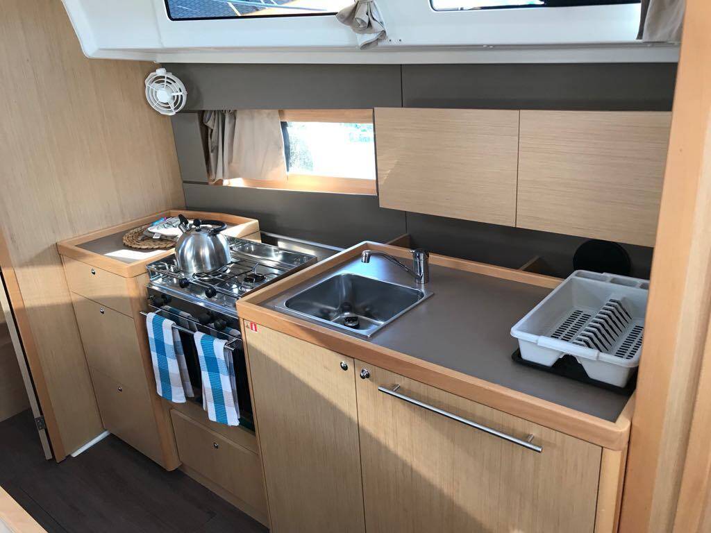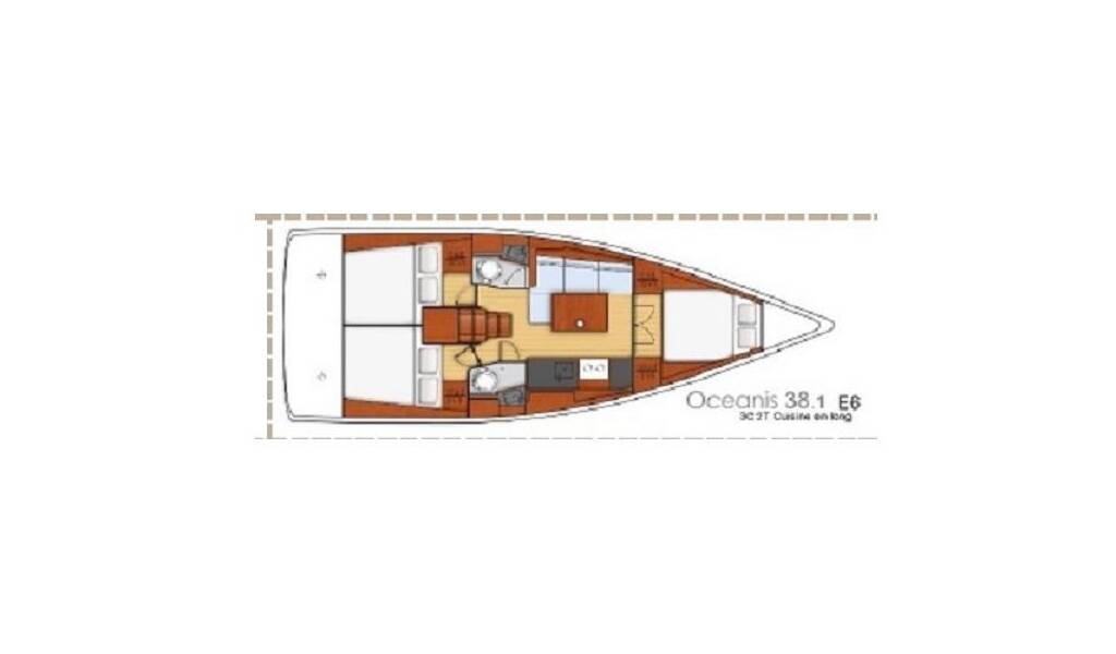 Diese Yacht Oceanis 38.1 (Segelboot - Baujahr 2018) liegt in der Lefkas, D-Marin, Ionisches Meer, Griechenland . Sie verfügt über 3 Kabinen, bietet Ihnen Platz für 6 + 2 Personen und hat 2 WC.