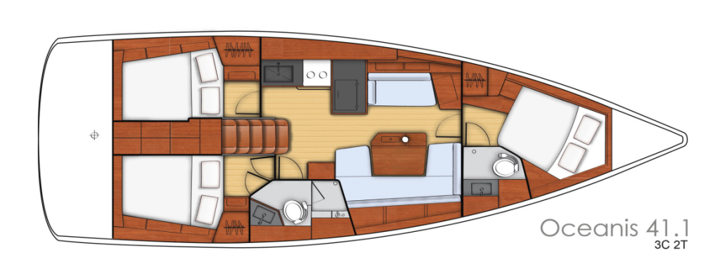 Diese Yacht Oceanis 41.1 (Segelboot - Baujahr 2019) liegt in der Sicily, Portorosa, Sizilien, Italien. Sie verfügt über 3 Kabinen, bietet Ihnen Platz für 6 + 2 Personen und hat 2 WC.