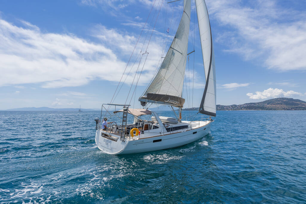 Diese Yacht Oceanis 45 (Segelboot - Baujahr 2012) liegt in der Rhodes New Marina, Dodekanes, Griechenland . Sie verfügt über 4 Kabinen, bietet Ihnen Platz für 8 + 2 Personen und hat 2 WC.