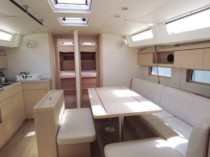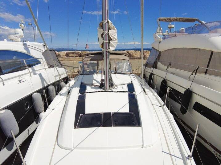 Diese Yacht Oceanis 46.1 (Segelboot - Baujahr 2023) liegt in der Hyeres Port Saint Pierre, Provence-Alpes-Côte d'Azur, Frankreich. Sie verfügt über 5 Kabinen, bietet Ihnen Platz für 12 Personen und hat 3 WC.