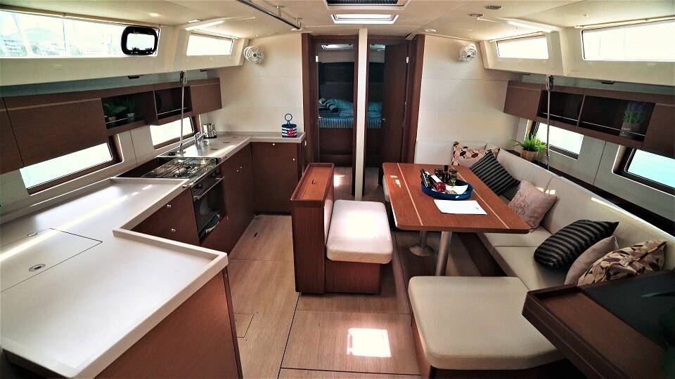 Diese Yacht Oceanis 46.1 (Segelboot - Baujahr 2021) liegt in der Preveza Marina, Ionisches Meer, Griechenland . Sie verfügt über 4 Kabinen, bietet Ihnen Platz für 10 Personen und hat 4 WC.