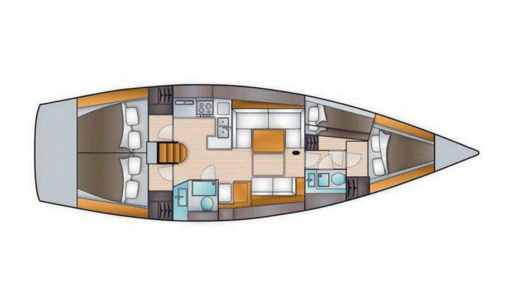 Diese Yacht Salona 44 (Segelboot - Baujahr 2011) liegt in der Athens, Alimos marina, Athens area/Saronic/Peloponese, Griechenland . Sie verfügt über 4 Kabinen, bietet Ihnen Platz für 8 Personen und hat 2 WC.