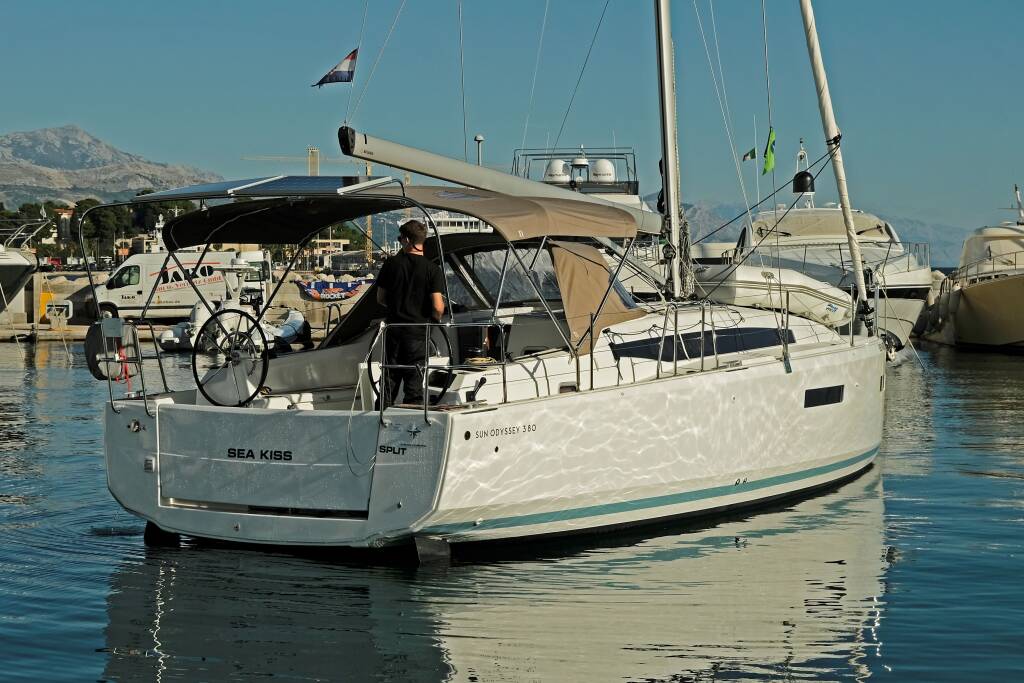 Diese Yacht Sun Odyssey 380 (Segelboot - Baujahr 2024) liegt in der ACI Marina Split, Split & Umgebung, Kroatien. Sie verfügt über 3 Kabinen, bietet Ihnen Platz für 6 + 2 Personen und hat 2 WC.