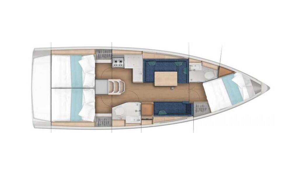 Diese Yacht Sun Odyssey 380 (Segelboot - Baujahr 2024) liegt in der Palma de Mallorca, Real Club Nautico, Balearische Inseln, Spanien. Sie verfügt über 3 Kabinen, bietet Ihnen Platz für 6 Personen und hat 2 WC.