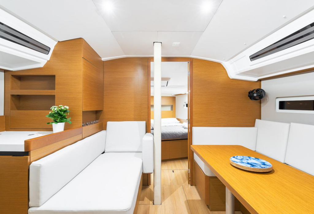 Diese Yacht Sun Odyssey 410 (Segelboot - Baujahr 2021) liegt in der Lefkas, D-Marin, Ionisches Meer, Griechenland . Sie verfügt über 3 Kabinen, bietet Ihnen Platz für 8 Personen und hat 2 WC.