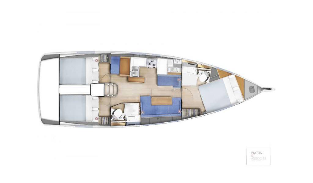 Diese Yacht Sun Odyssey 410 (Segelboot - Baujahr 2023) liegt in der Pylos, Pylos Marina, Ionisches Meer, Griechenland . Sie verfügt über 3 Kabinen, bietet Ihnen Platz für 8 Personen und hat 2 WC.