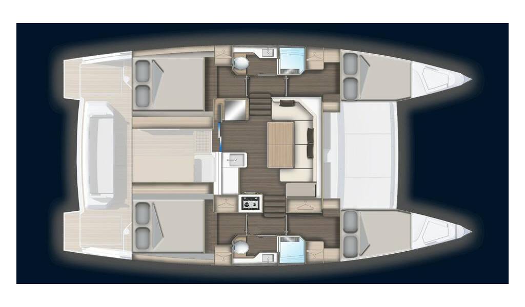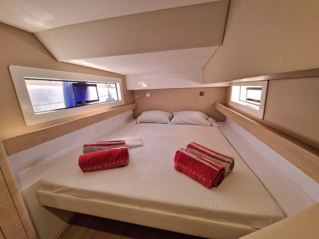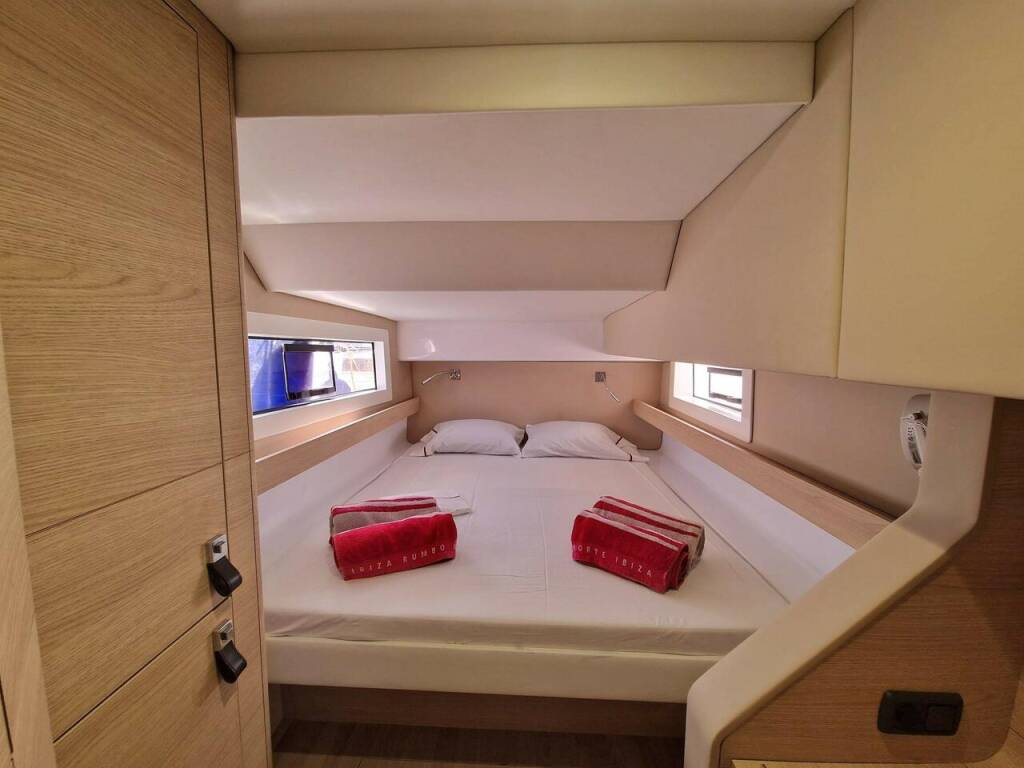 This yacht Aventura 37 (Catamaran - year 2024) lies in the Ibiza, Club Nàutic Sant Antoni de Portmany, Balearic Islands, Spain. It has 4 cabins, accommodate 8 + 2 people and has 2 toilets.