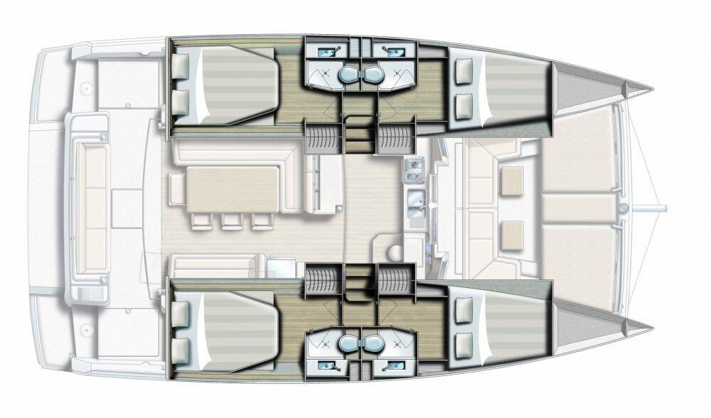 This yacht Bali 4.1 (Catamaran - year 2019) lies in the Kos, Kos Marina, Dodecanese, Greece. It has 4 + 2 cabins, accommodate 8 + 2 + 2 people and has 4 toilets.