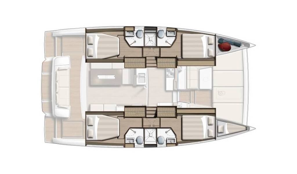 This yacht Bali 4.2 (Catamaran - year 2023) lies in the Phuket, Yacht Haven Marina, Phuket, Thailand . It has 4 + 1 cabins, accommodate 8 + 1 people and has 2 toilets.