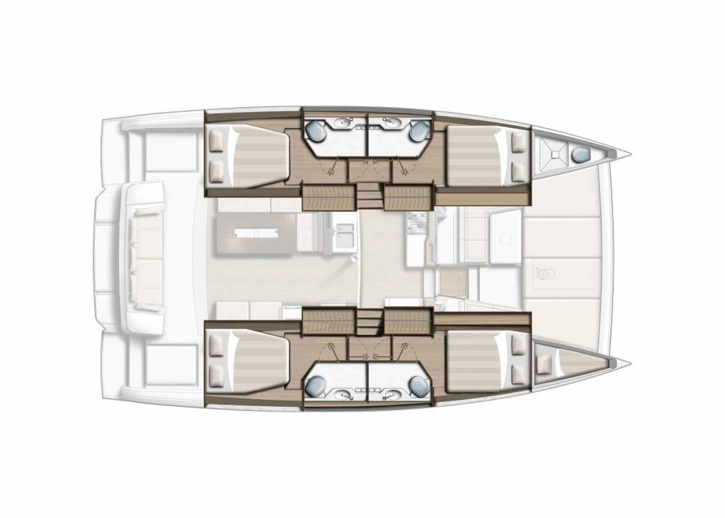 This yacht Bali 4.2 (Catamaran - year 2023) lies in the Volos, Skiathos/Sporades, Volos, Greece. It has 4 + 1 cabins, accommodate 10 people and has 4 + 1 toilets.