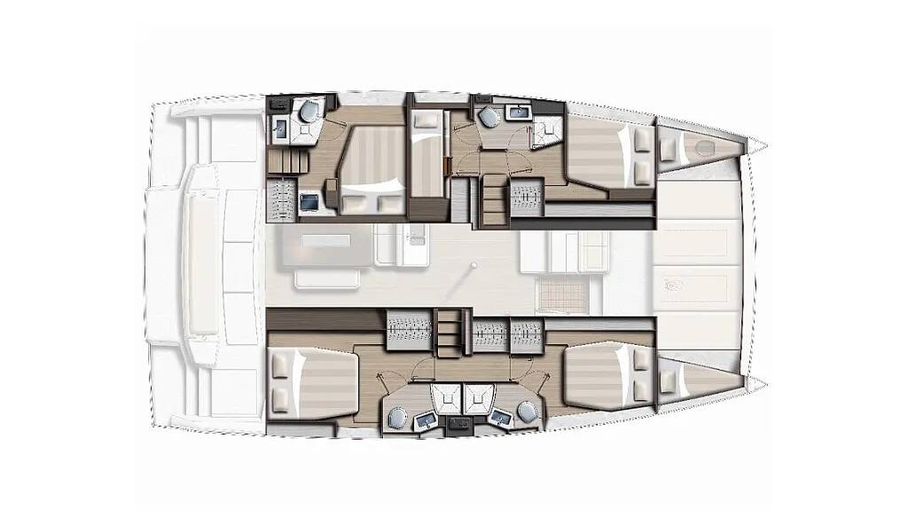 This yacht Bali 4.6 (Catamaran - year 2021) lies in the Lefkas, D-Marin, Ionian Islands, Greece. It has 5 + 2 cabins, accommodate 12 people and has 4 toilets.