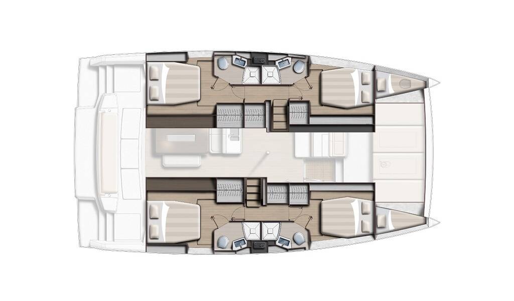 This yacht Bali 4.6 (Catamaran - year 2022) lies in the Göcek/Skopea Marina, Aegean, Turkey. It has 4 + 1 cabins, accommodate 9 people and has 4 + 1 toilets.