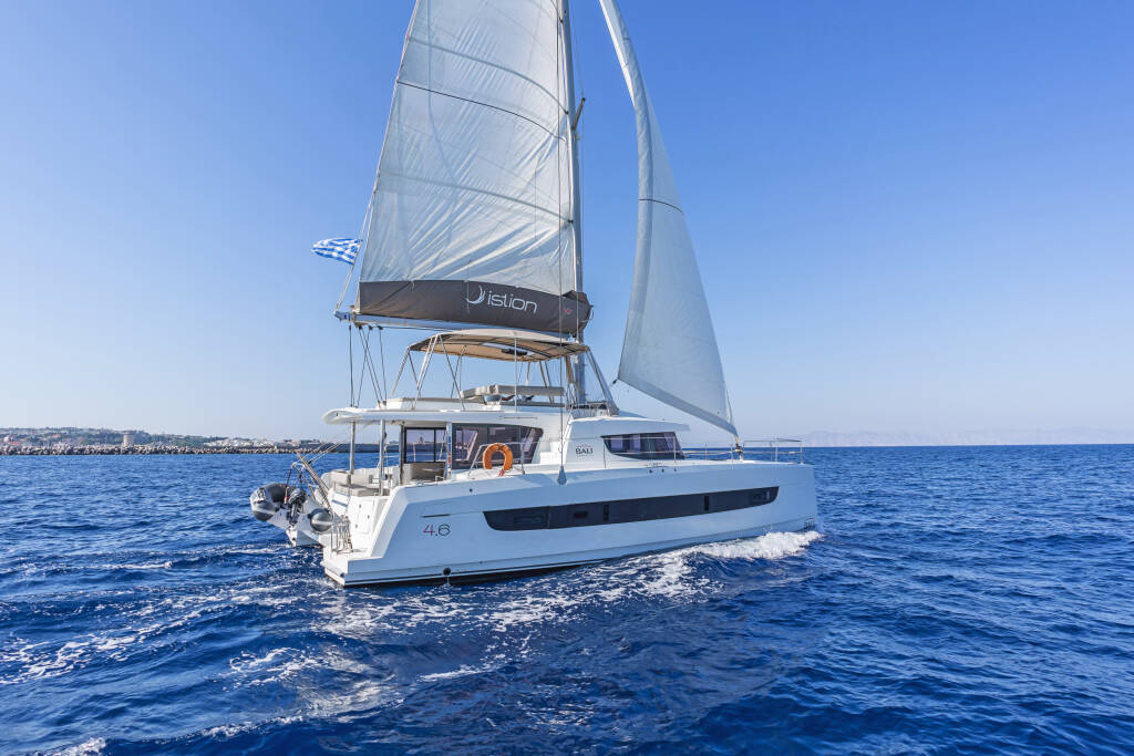 This yacht Bali 4.6 (Catamaran - year 2021) lies in the Preveza, Main Port, Ionian Islands, Greece. It has 7 + 2 cabins, accommodate 12 people and has 4 + 1 toilets.