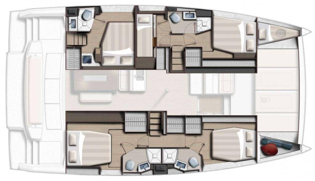 This yacht Bali 4.6 (Catamaran - year 2022) lies in the Lefkas, D-Marin, Ionian Islands, Greece. It has 5 + 1 cabins, accommodate 12 people and has 4 + 1 toilets.