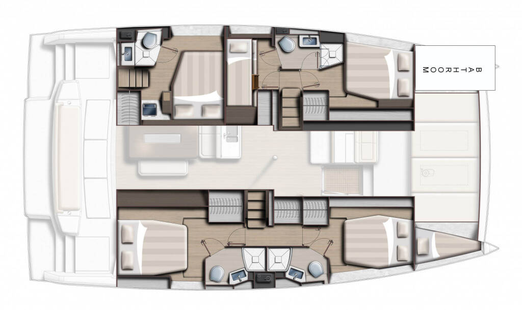 This yacht Bali 4.6 (Catamaran - year 2024) lies in the Trogir, Yachtclub Seget (Marina Baotić), Split region, Croatia. It has 5 + 1 cabins, accommodate 11 people and has 4 + 1 toilets.
