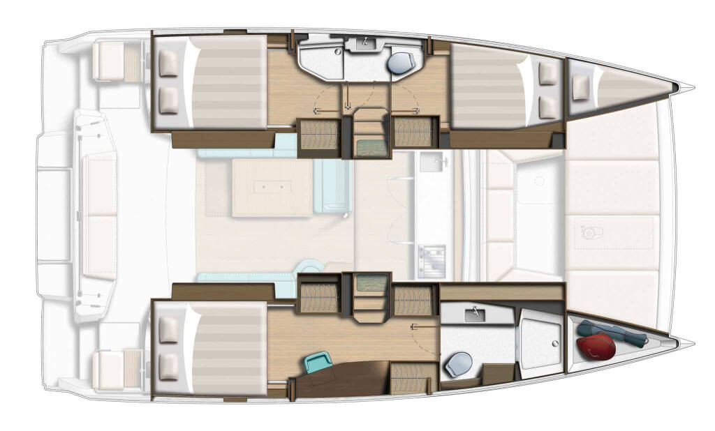 This yacht Bali Catsmart (Catamaran - year 2024) lies in the Lefkas, D-Marin, Ionian Islands, Greece. It has 3 + 1 cabins, accommodate 8 people and has 2 toilets.