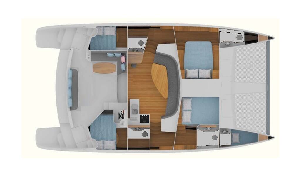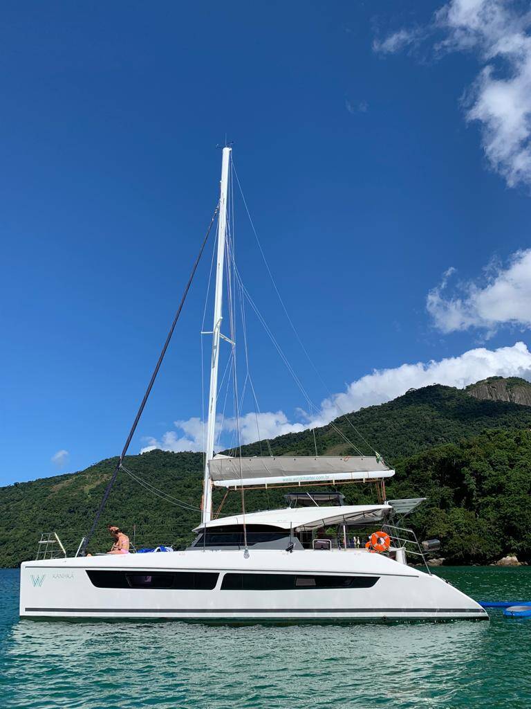 This yacht CatFlash 43 (Catamaran - year 2022) lies in the Farol de Paraty Marina, Southeast, Brasil, Brazil. It has 4 cabins, accommodate 8 people and has 4 toilets.