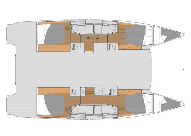 This yacht Fountaine Pajot Elba 45 (Catamaran - year 2023) lies in the BVI, Tortola, Ritter House Marina, British Virgin Islands, British Virgin Islands. It has 4 + 2 cabins, accommodate 9 people and has 4 + 1 toilets.