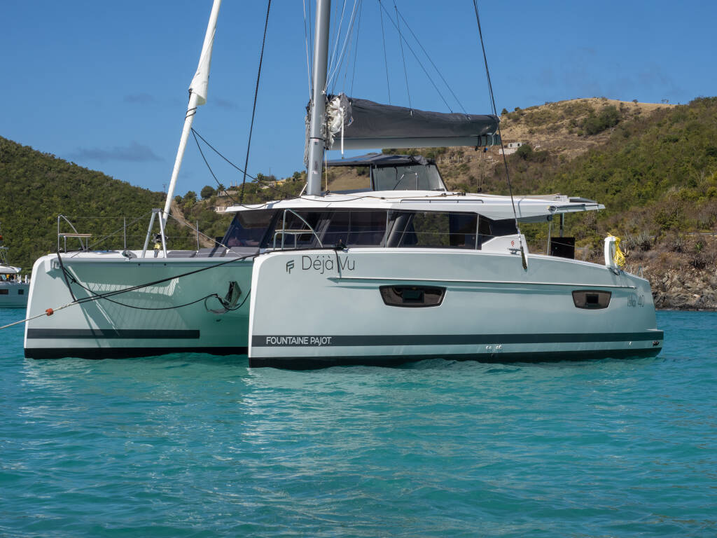 This yacht Fountaine Pajot Isla 40 (Catamaran - year 2022) lies in the BVI, Tortola, Ritter House Marina, British Virgin Islands, British Virgin Islands. It has 4 + 1 cabins, accommodate 9 people and has 2 toilets.