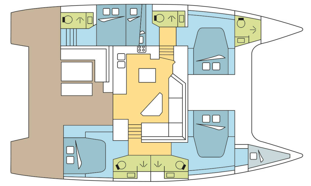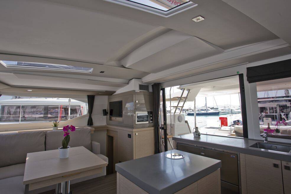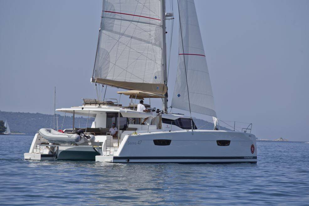 This yacht Fountaine Pajot Saona 47 Quintet (Catamaran - year 2019) lies in the La Paz, Costa Baja Marina, Baja California Sur, Mexico. It has 5 + 1 cabins, accommodate 12 people and has 5 toilets.