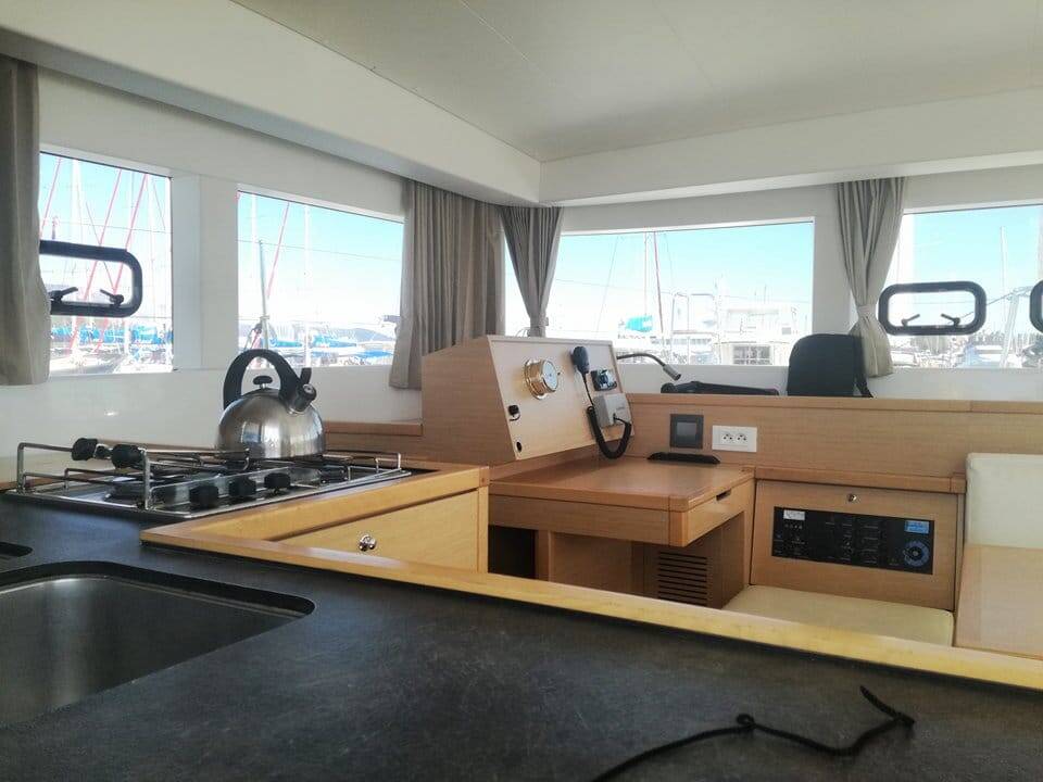 This yacht Lagoon 39 (Catamaran - year 2016) lies in the Lefkas main port, Ionian Islands, Greece. It has 4 + 2 cabins, accommodate 10 people and has 4 toilets.