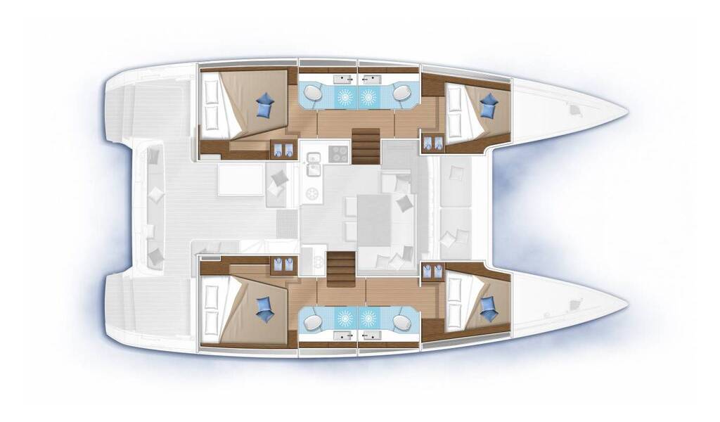 This yacht Lagoon 40 (Catamaran - year 2019) lies in the Seychelles, Mahe, Mahé, Seychelles. It has 4 + 2 cabins, accommodate 8 + 2 people and has 2 toilets.