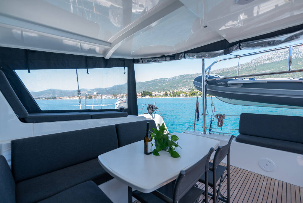 This yacht Lagoon 42 OW (Catamaran - year 2023) lies in the Marina Kastela, Split region, Croatia. It has 3 + 2 cabins, accommodate 6 + 2 people and has 3 toilets.