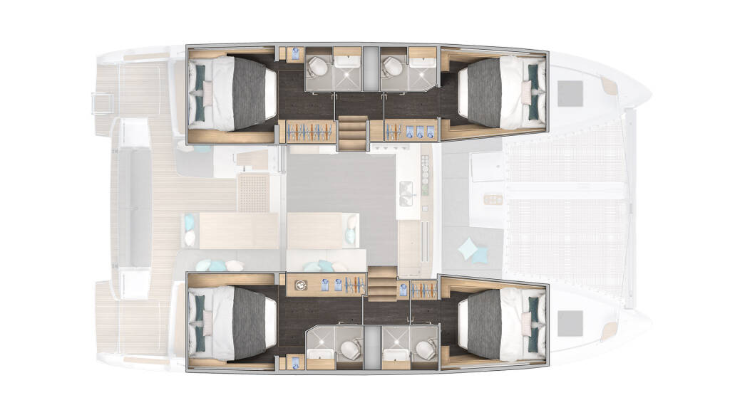 This yacht Lagoon 43 (Catamaran - year 2026) lies in the BVI, Tortola, Ritter House Marina, British Virgin Islands, British Virgin Islands. It has 4 cabins, accommodate 8 people and has 4 toilets.