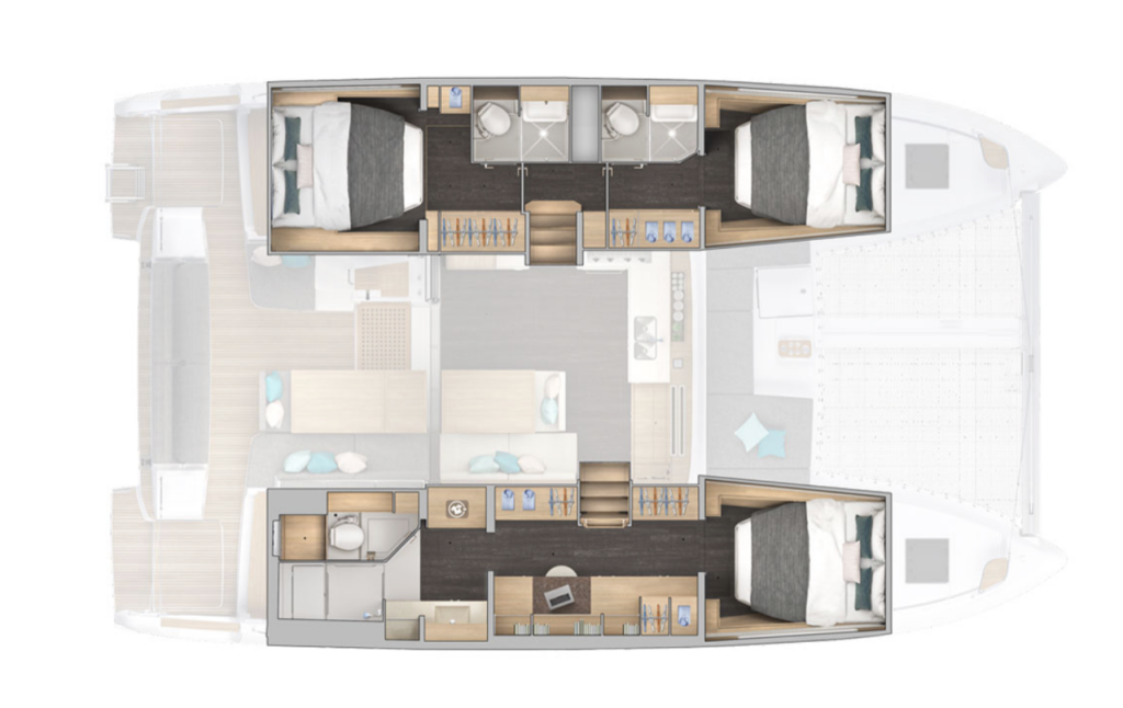This yacht Lagoon 43 (Catamaran - year 2026) lies in the Trogir, Yachtclub Seget (Marina Baotić), Split region, Croatia. It has 3 + 1 cabins, accommodate 6 + 2 + 1 people and has 3 toilets.