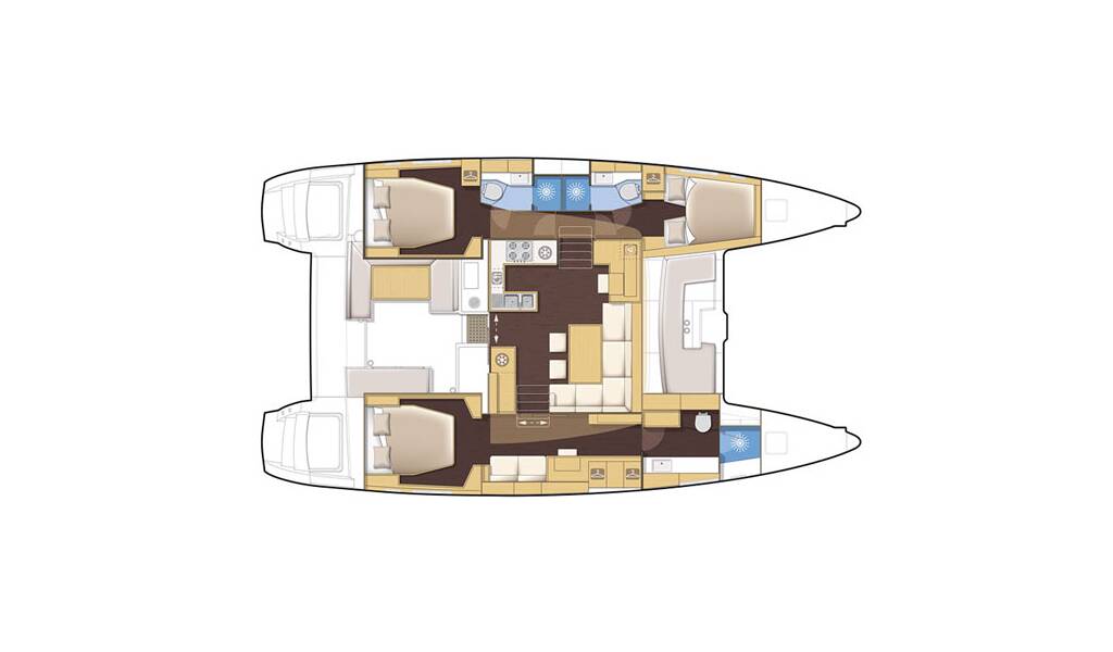 This yacht Lagoon 450 (Catamaran - year 2012) lies in the Guadeloupe, La Marina Bas du Fort, Guadeloupe, Caribbean. It has 3 cabins, accommodate 6 people and has 3 toilets.