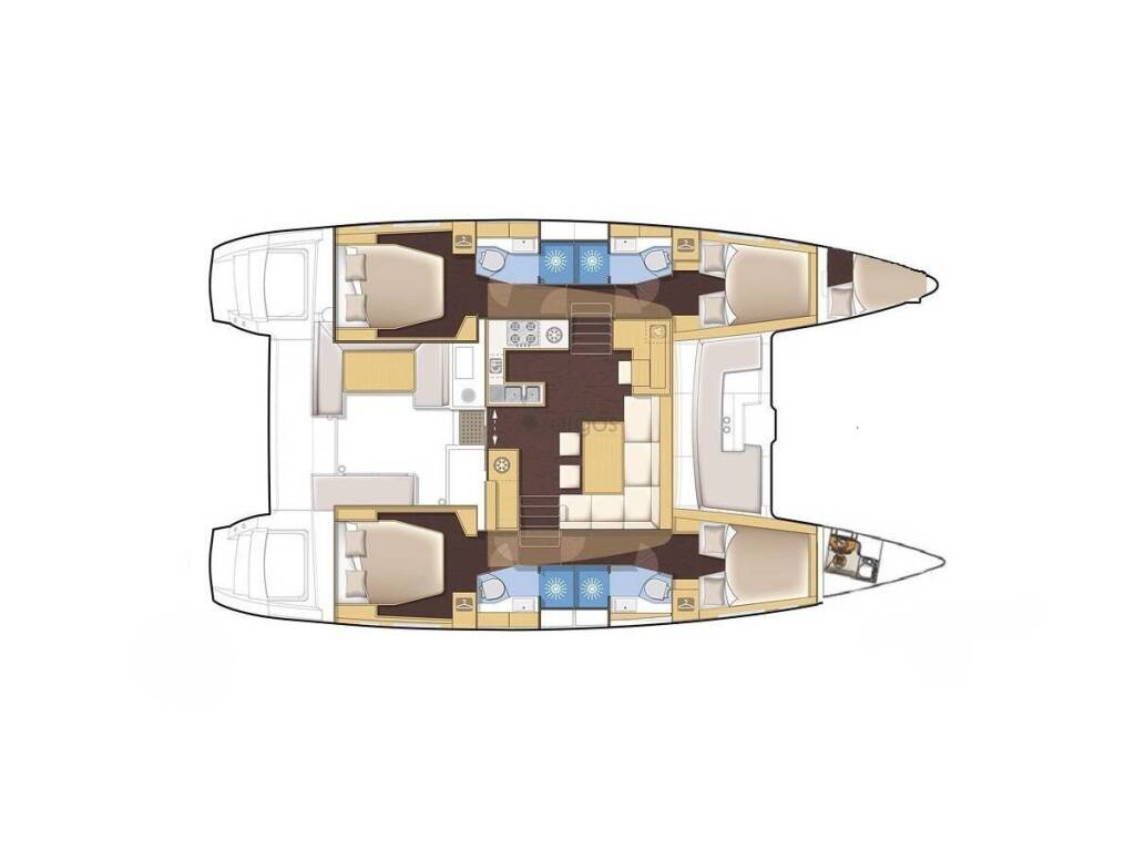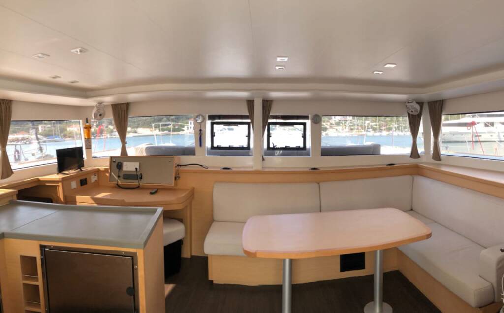 This yacht Lagoon 450 F (Catamaran - year 2019) lies in the Lefkas main port, Ionian Islands, Greece. It has 4 + 1 cabins, accommodate 10 people and has 4 toilets.