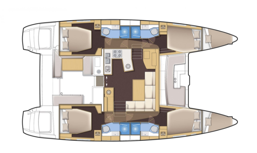 This yacht Lagoon 450 F (Catamaran - year 2019) lies in the Preveza, Main Port, Ionian Islands, Greece. It has 4 + 2 cabins, accommodate 8 + 2 people and has 4 + 1 toilets.