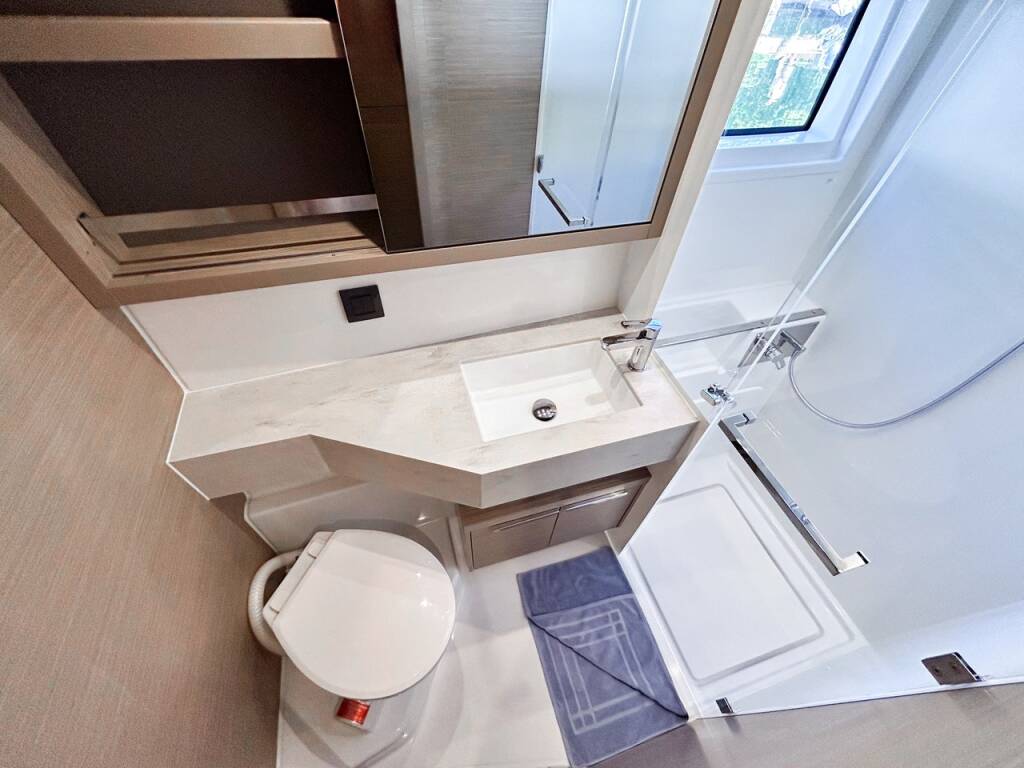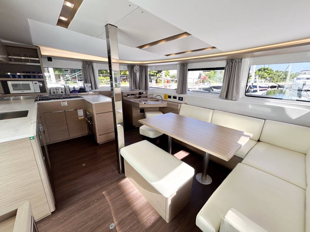 This yacht Lagoon 46 (Catamaran - year 2024) lies in the BVI, Tortola, Nanny Cay Marina, British Virgin Islands, British Virgin Islands. It has 4 + 1 cabins, accommodate 9 people and has 5 toilets.