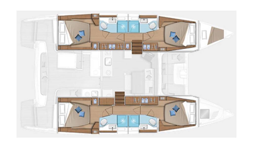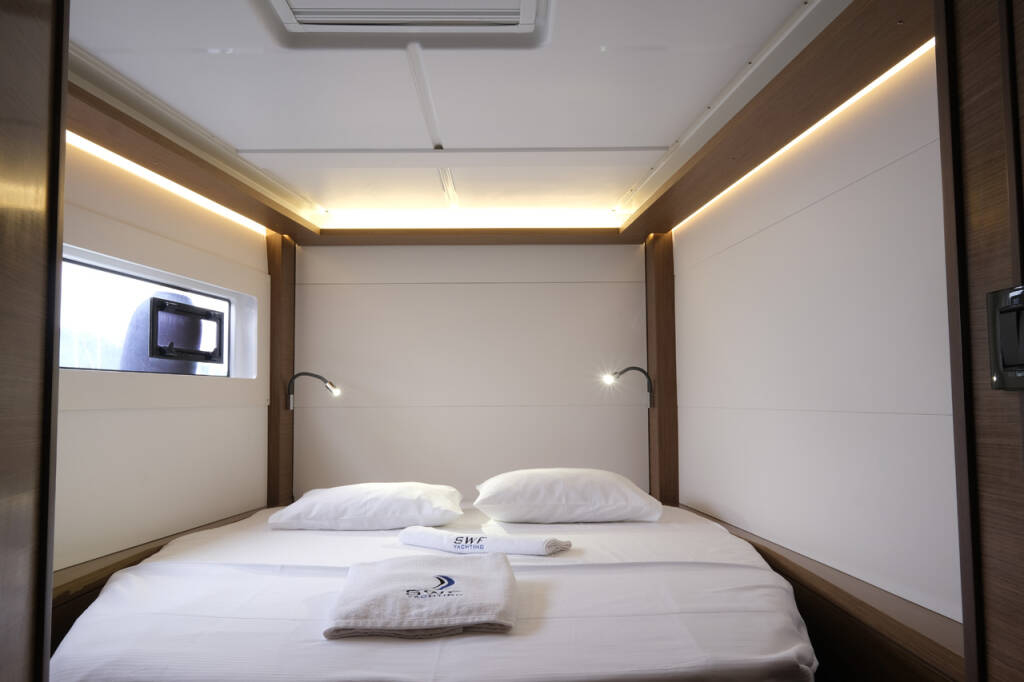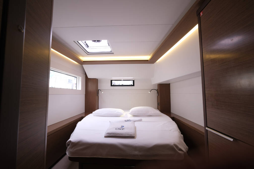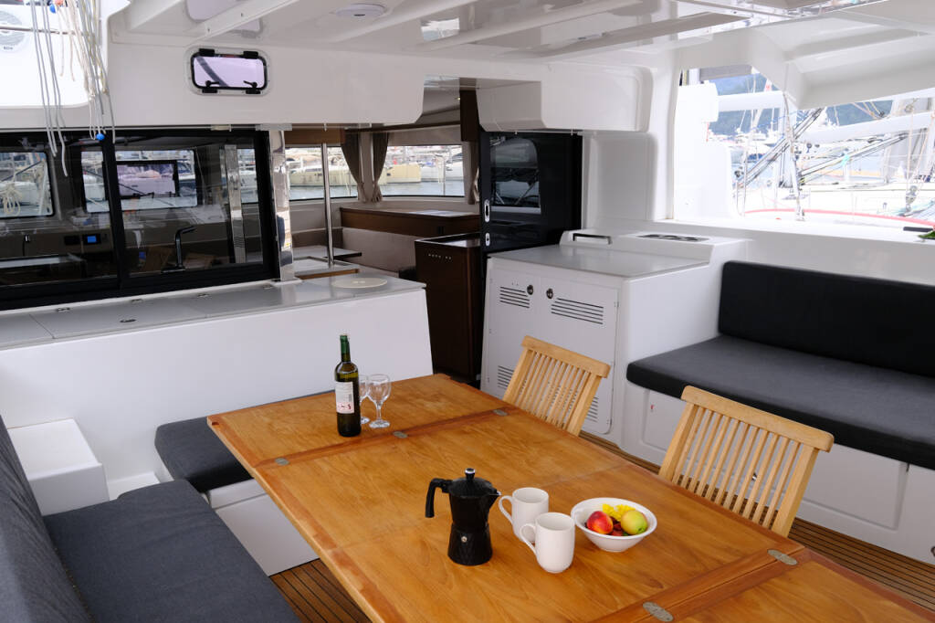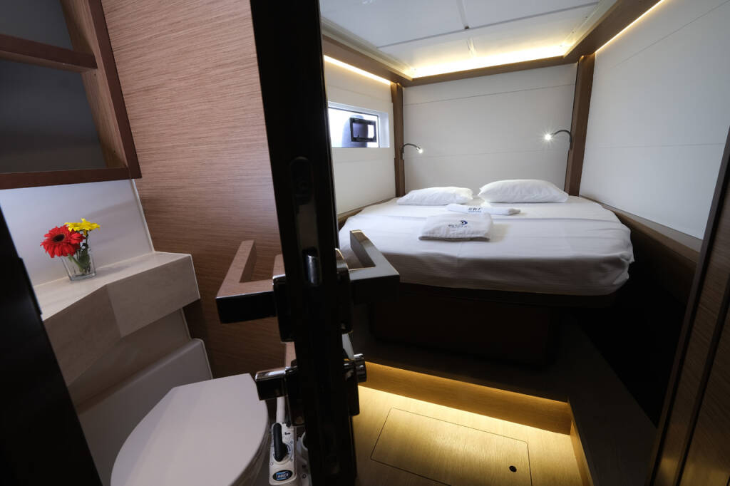 This yacht Lagoon 46 (Catamaran - year 2020) lies in the Volos, Skiathos/Sporades, Volos, Greece. It has 4 + 1 cabins, accommodate 9 people and has 4 toilets.