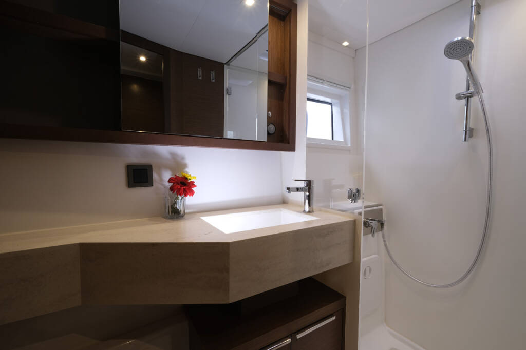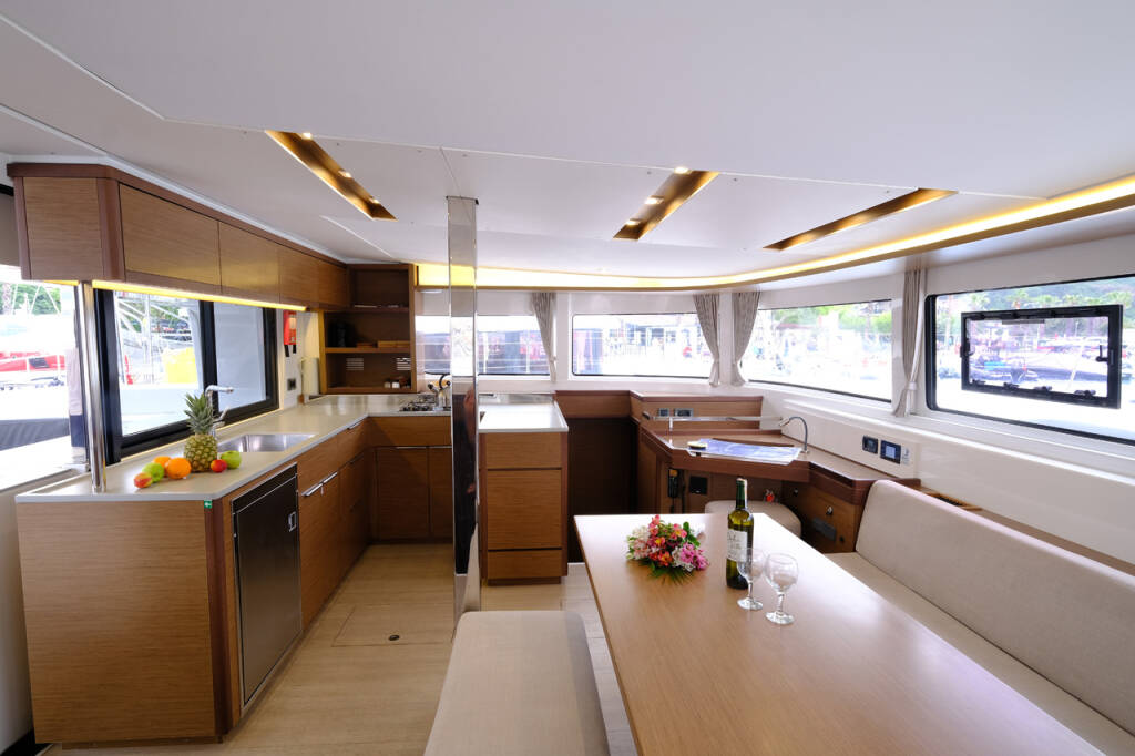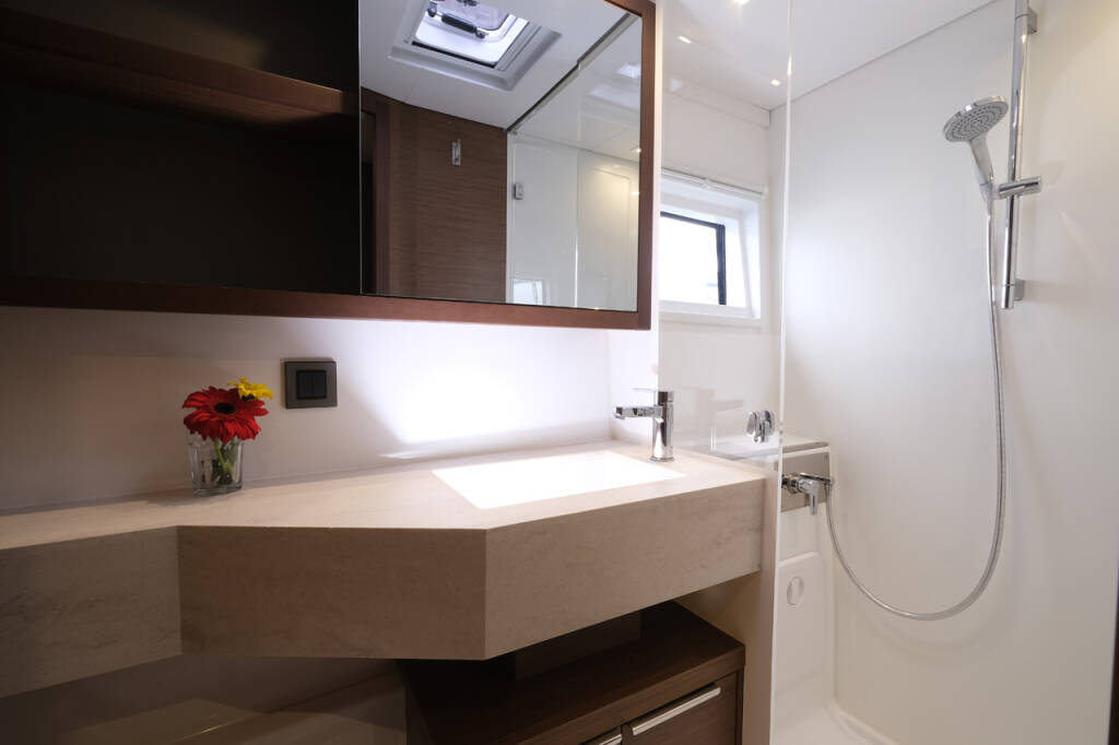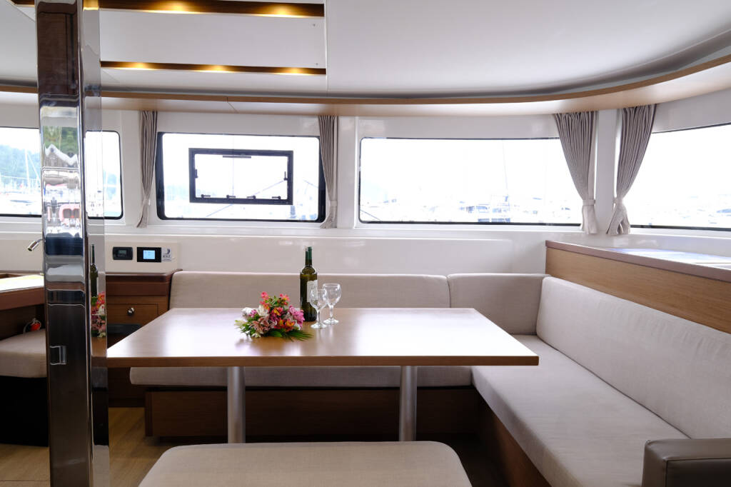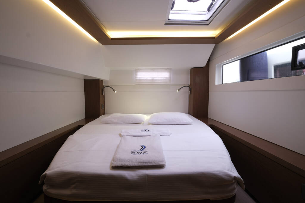 This yacht Lagoon 46 (Catamaran - year 2020) lies in the Volos, Skiathos/Sporades, Volos, Greece. It has 4 + 1 cabins, accommodate 9 people and has 4 toilets.