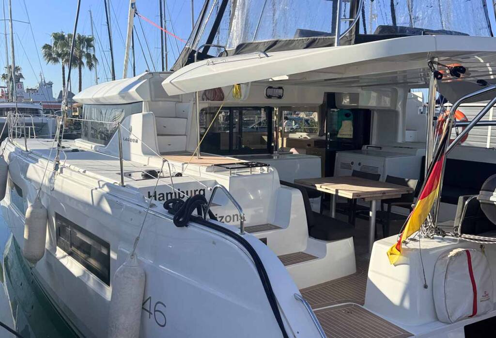 This yacht Lagoon 46 (Catamaran - year 2023) lies in the Palma de Mallorca, Real Club Nautico, Balearic Islands, Spain. It has 4 + 1 cabins, accommodate 10 people and has 4 + 1 toilets.