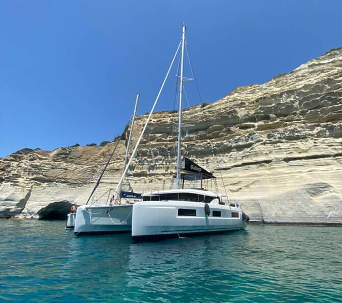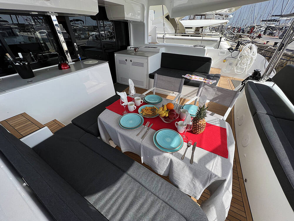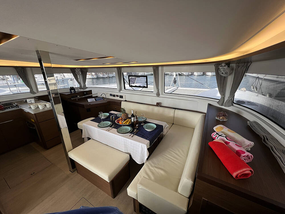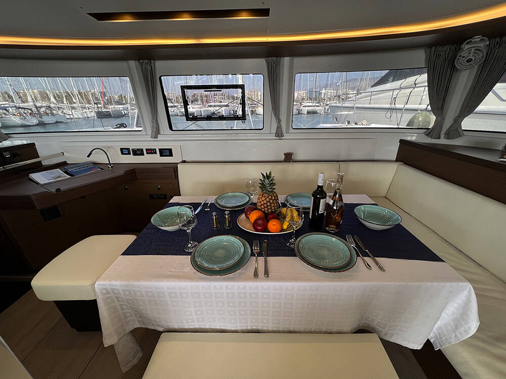 This yacht Lagoon 46 (Catamaran - year 2022) lies in the Athens, Alimos marina, Athens area/Saronic/Peloponese, Greece. It has 4 + 2 cabins, accommodate 8 + 2 people and has 4 + 1 toilets.