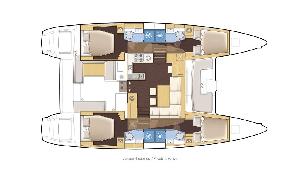 This yacht Lagoon 46 (Catamaran - year 2023) lies in the Lefkas main port, Ionian Islands, Greece. It has 4 + 2 cabins, accommodate 12 people and has 4 + 1 toilets.