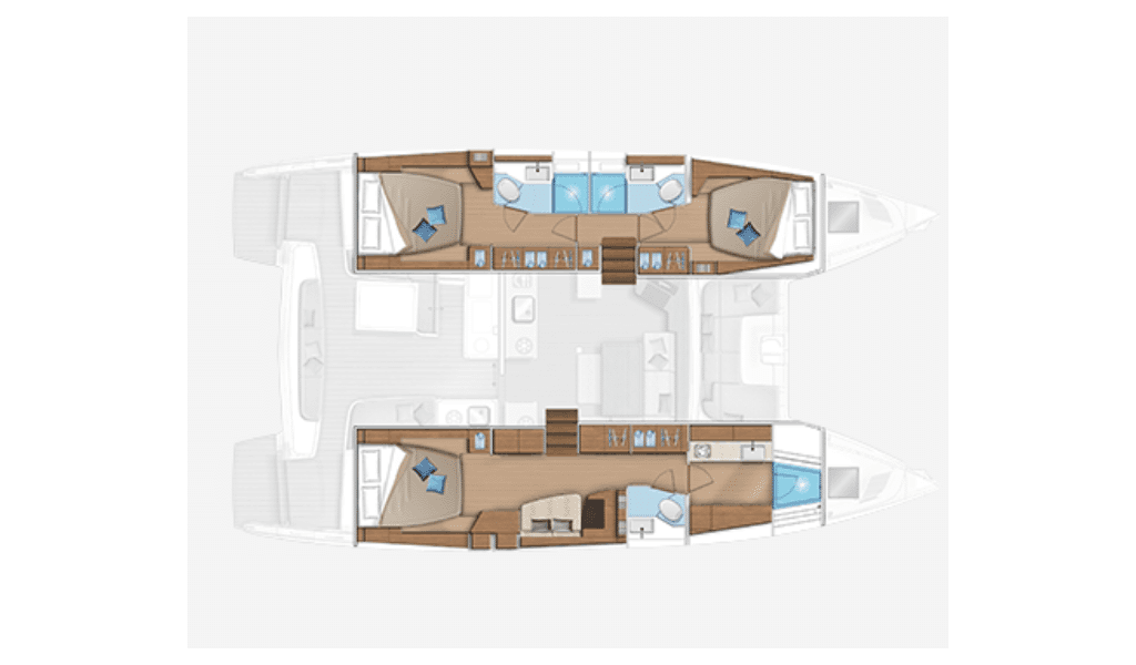 This yacht Lagoon 46 OW (Catamaran - year 2021) lies in the BVI, Tortola, Nanny Cay Marina, British Virgin Islands, British Virgin Islands. It has 3 + 1 cabins, accommodate 7 people and has 3 toilets.