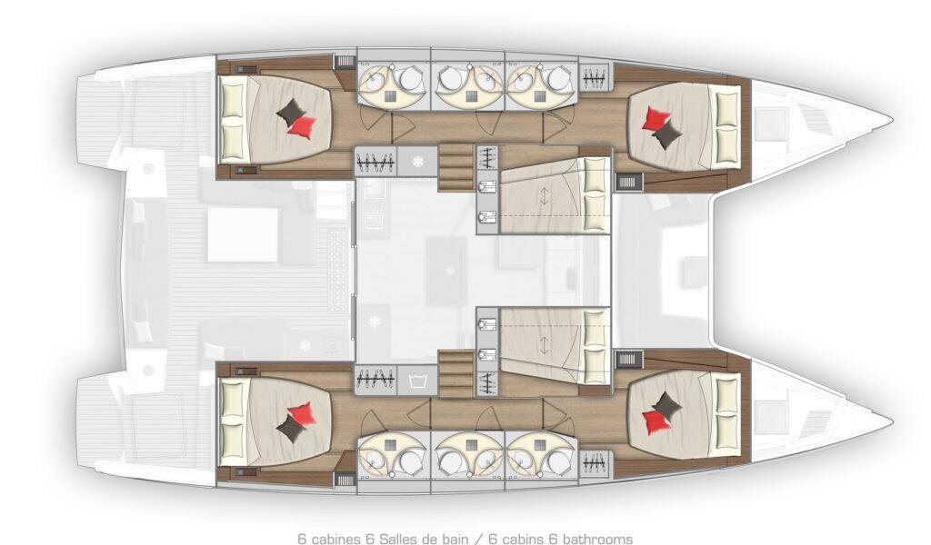 This yacht Lagoon 50 (Catamaran - year 2023) lies in the BVI, Tortola, Nanny Cay Marina, British Virgin Islands, British Virgin Islands. It has 6 + 1 cabins, accommodate 13 people and has 6 + 1 toilets.