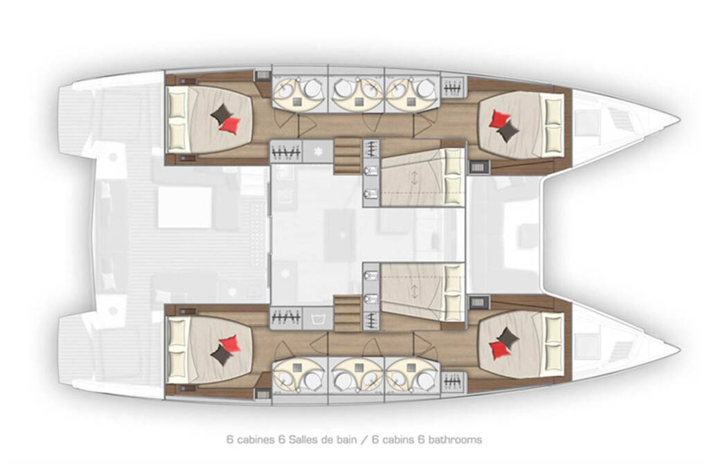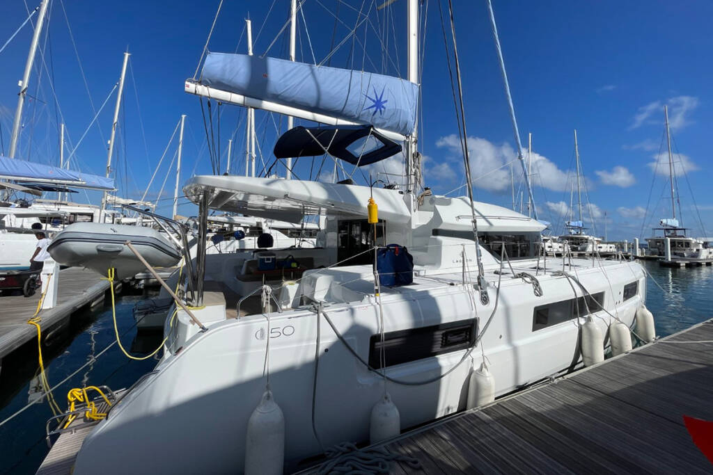 This yacht Lagoon 50 (Catamaran - year 2023) lies in the BVI, Tortola, Nanny Cay Marina, British Virgin Islands, British Virgin Islands. It has 6 + 2 cabins, accommodate 12 people and has 6 toilets.