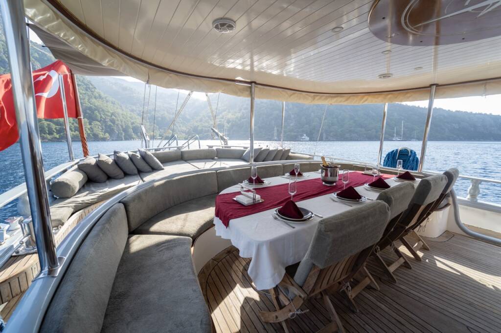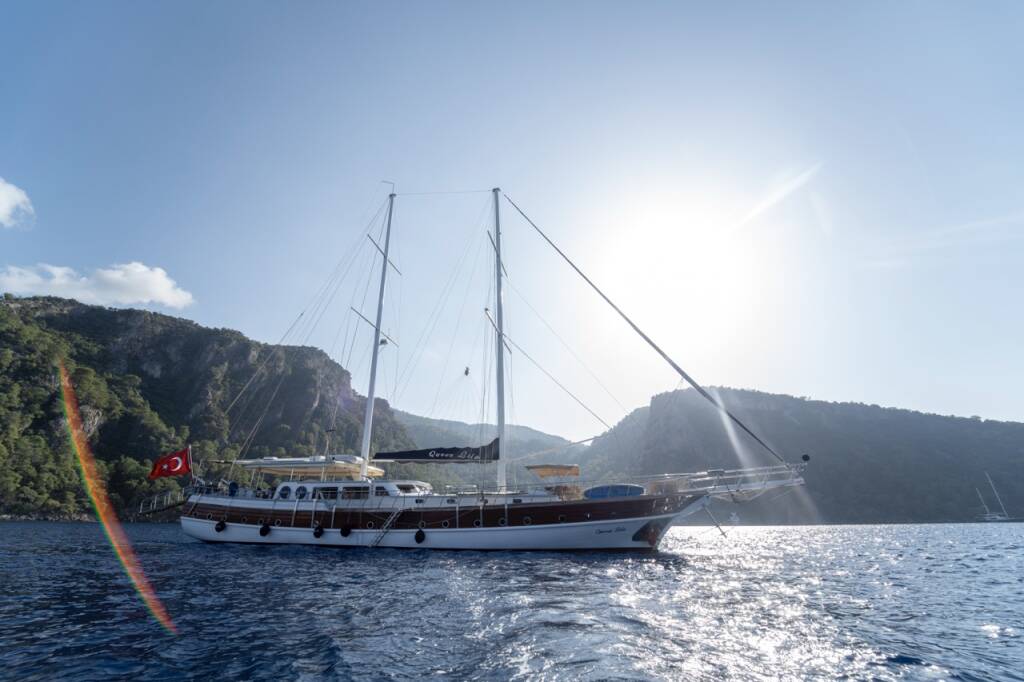 This yacht Queen Lila (Gulet - year 2005) lies in the Fethiye, Ece Saray Marina Resort, Aegean, Turkey. It has 6 cabins, accommodate 12 people and has 6 toilets.