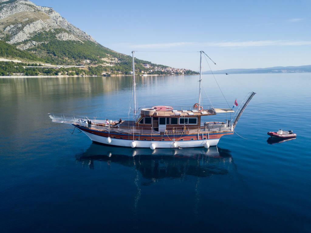 Welcome aboard Trebenna — a 23-meter gulet where classic woodcraft meets modern luxury. With four elegant cabins for up to eight guests, she offers comfort and privacy at sea. Enjoy sunny decks, a jacuzzi, and quiet, eco-friendly cruising powered by solar energy. Guided by an exceptional crew, Trebenna delivers a refined blend of style, relaxation, and Mediterranean adventure.